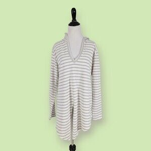 Anthropologie Left Of Center Hooded Pullover gray/cream striped L