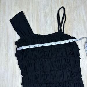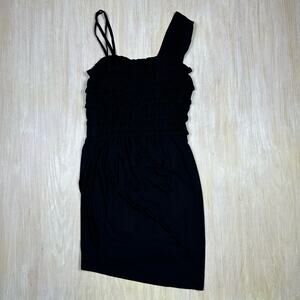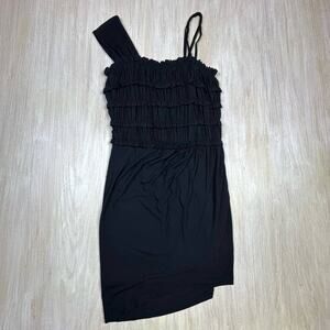 Anthropologie Leifnotes Black One Shoulder Ruffle Divergent Mock Wrap Dress Small