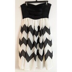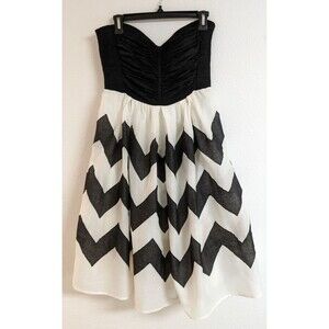 Anthropologie Leifnotes Black/White "Cherie" Chevron Strapless Party Dress SZ 10