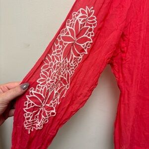 Stunning Leifnotes by Anthropologie Vaoltta Semi Sheer Blouse. Embroidered lace accents. Banded waist. Lightweight Viscose. Oversized.