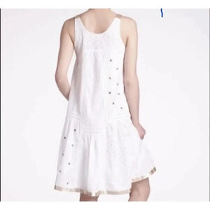 Anthropologie Leifnotes White Eyelet Gold Trim Beaded Sleeveless Dress Size 4