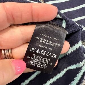 Anthropologie Leifnotes navy and aqua 3/4 length sleeves top with ruffle