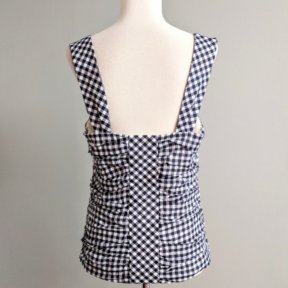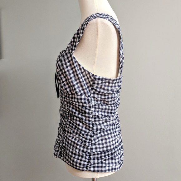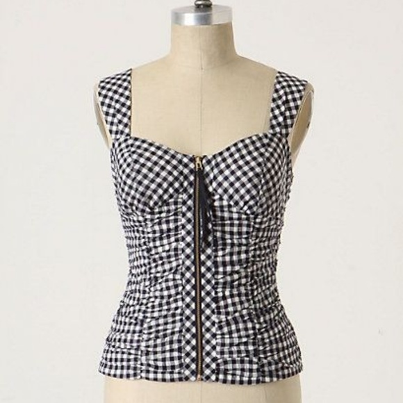 Corset style cami in a black and white gingham print with ruching. Front zipper. Size 8. Excellent condition.