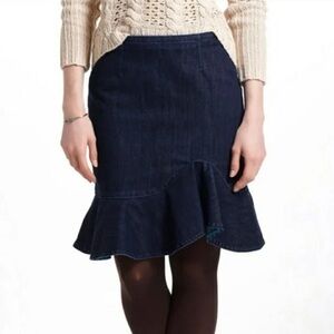 Anthropologie Leifsdottir Blue Asymmetrical Trumpet Skirt with Ruffles