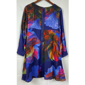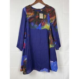 Anthropologie Leifsdottir Blue Silk Swing Dress Abstract Floral Back Zip M