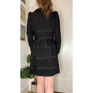 Details: Anthropologie Leifsdottir Button Front Long Sleeve Embellished Coat - Size: 2- Color: Black- Material: 87% Wool, 13% Nylon- Features: Button closure, long sleeve, embellished, lined, dry clean, pockets, pleated, comfort, breathable, casual.