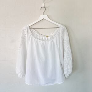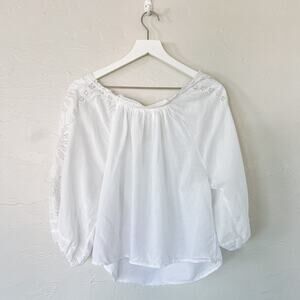 White lacy peasant top by Leifsdottir from Anthropologie.