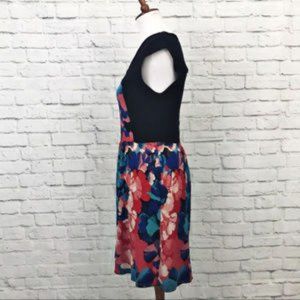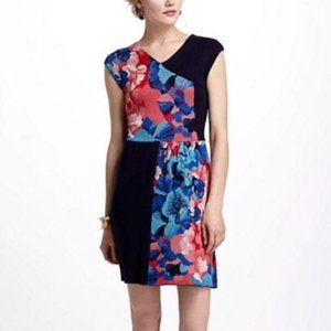 Excellent Condition Anthropologie Leifsdottir Cap Sleeve Floral Print and Navy Blue Colorblock Dress. Cotton/Silk Blend. Super comfortable and versatile. Tag size S. Approximate measurements laying flat: armpit to armpit 16.5”, waist 14”, length shoulder to hem 36”.