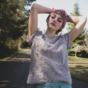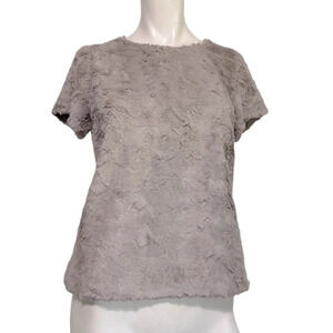 Anthropologie Leifsdottir Gray Faux Fur Short Sleeve Top Size Small Petite