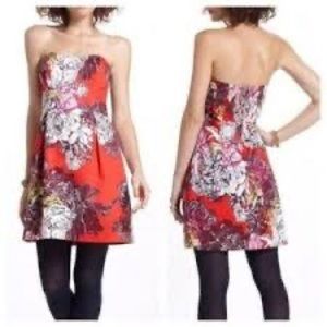 Anthropologie Leifsdottir Itoh Red Floral Strapless Mini Dress