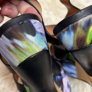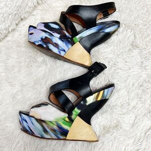 Anthropologie Leifsdottir Kivi Wedge Sandals Sculptural Heel Watercolor Wedge Sa