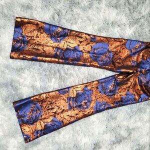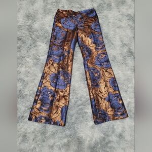 Stunning bronze/blue metallic print pants from Leifsdottir with boot cut and mid-rise style. Fully lined for a flattering fit. Gently worn and in good condition. 32" inseam. Dry clean only.
