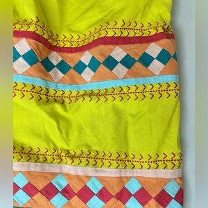 The Anthropologie Leifsdottir Quilotoa Strapless Dress is a stylish and unique piece perfect for brunch with friends or a date night out.. This knee-length dress features a patchwork pattern and smocked details, adding a touch of charm to your wardrobe. Made from comfortable cotton fabric in a vibrant yellow color, this sleeveless dress with a strapless neckline and zip closure is a must-have for the summer, fall, and spring seasons. Perfect for women size 4 looking for a versatile and trendy sundress option. It is pre-owned, but in excellent condition!