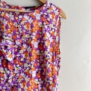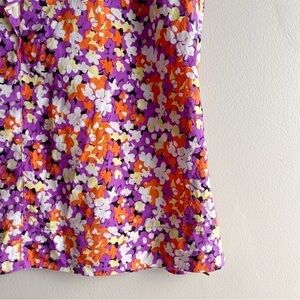 Anthropologie Leifsdottir Silk Ruffle Sleeveless Blouse Orange/Purple Florals, 8