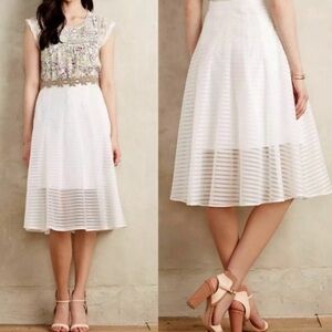 Anthropologie Brand - Leifsdottir White Striped Midi Skirt. Size 4. Lined with soft satin material.