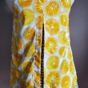Anthropologie Porridge Lemon & Checks Swing Split Back Top. Too cute for words. Layered tank and sells quickly. The top is missing the size and fabric tags, however from looking the top up, it is a poly lemon shell with Viscose linings. Laying flat, pit to pit is 16". It was sold to me as a medium, but I would definitively call it a small.