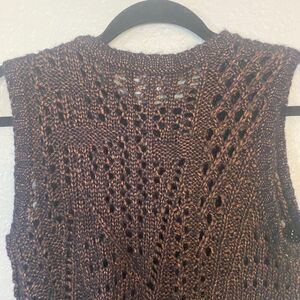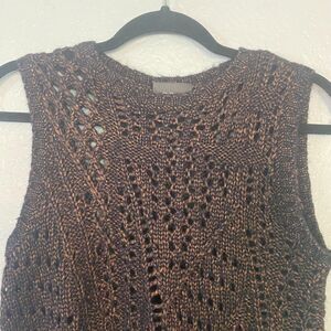 Anthropologie Leo & Sage | Sleeveless Sweater Vest Open Crochet Navy/Copper