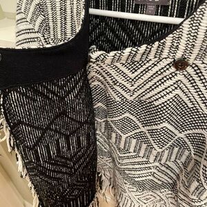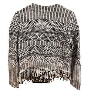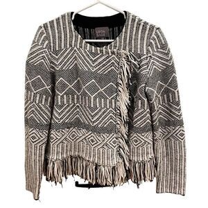 Anthropologie Leo & Sage Womens Sweater L Fringe Architecture Woven Blanket