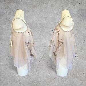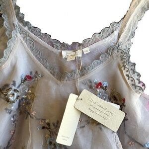 Anthropologie, let me be, embellished, sequins, beads, floral, embroidery, handkerchief hem, asymmetrical hem, bias cut, lace, sheer, dainty, soft, feminine, fairy core, coquette, whimsy, nwt, festival, summer, vacation, ibiza, euro, grail, nye, New Year’s Eve, party, special occasion, rare, htf