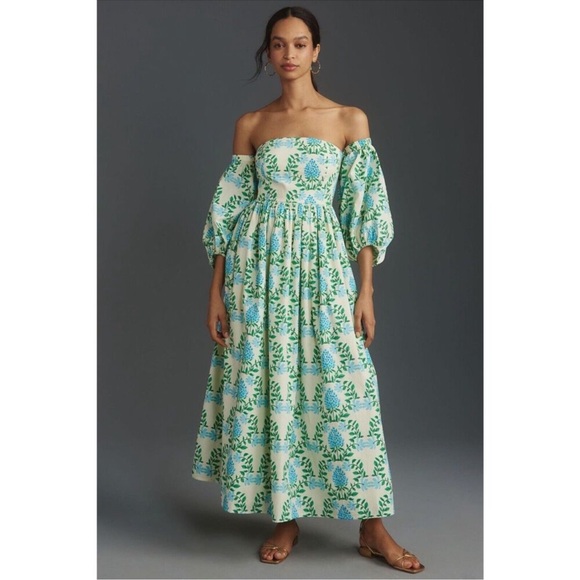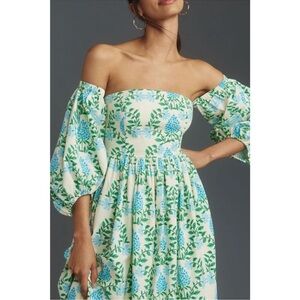 Anthropologie Let Me Be Long Sleeve Printed Midi Dress Blue Floral Size S Petite