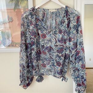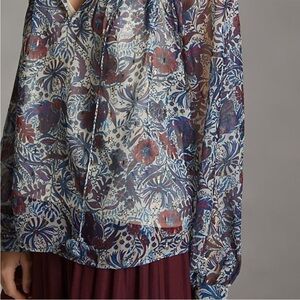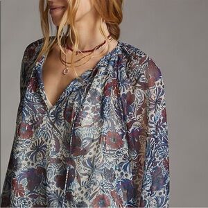 Anthropologie Let Me Be Metallic Floral Sheer Blouse Top in Size Small