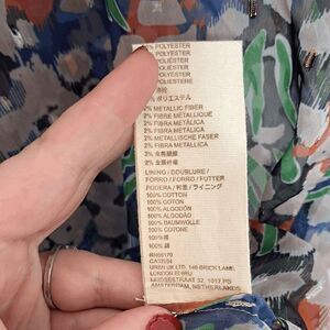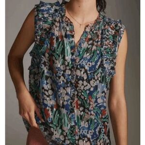 Anthropologie Let Me Be Metallic Sheer Floral Preppy Ruffle Career Top size XS