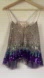 Dazzling camisole with shimmering sequins. Features a blend of silver and purple hues. Ideal for evening wear.