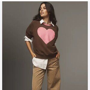Anthropologie Letluv Heart Ringer Brown Graphic Sweatshirt Size XS NEW WITH TAG
