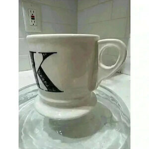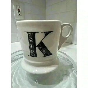 Anthropologie Letter K Initial Coffee Mug White Black Retro Shaving Cup Monogram
