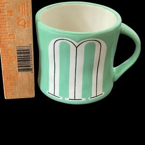 Anthropologie Letter M Mug Initial Monogram Mint Green Hand Painted Coffee Tea