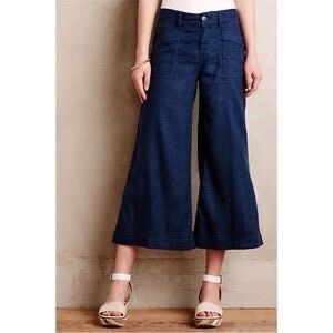 Anthropologie Level 99 Annabelle Navy Gaucho Wide Leg Tencel Linen Blend Pants