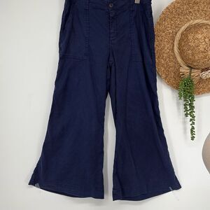 Anthropologie Level 99 Annabelle Navy Gaucho Wide Leg Tencel Linen Blend Pants 3
