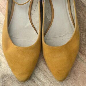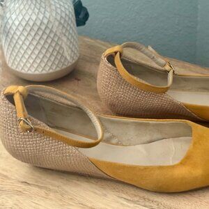 #Anthropologie #LienDo #CordobaWedges #SuedeShoes #MustardShoes #MiniWedge #AnkleStrap #Workwear #Size8 #FallStyle