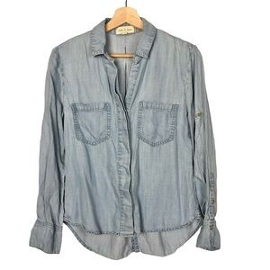 Anthropologie Light Blue Chambray Split Back Long Sleeve Button Down XS