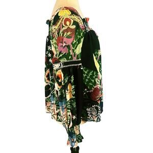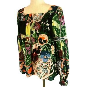 Anthropologie Lil Sire Puff Sleeved Smocked Floral Sheer Blouse Black Small