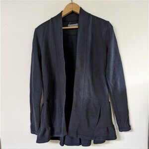 Anthropologie Lila Tiered Babydoll Open Front Cardigan Sweater XS navy blue