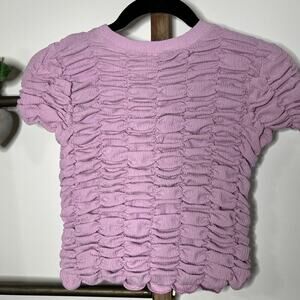 Chic lilac blouse with textured design. Short sleeves. Perfect for casual wear.