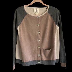 Anthropologie Lili’s Closet Cotton Colorblock Brown Grey Cream Cardigan …