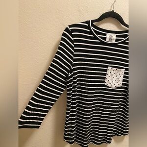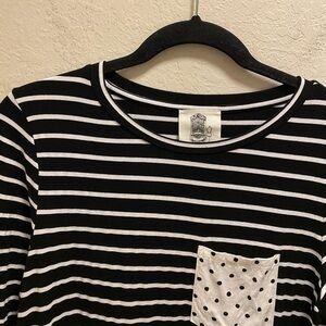 Anthropologie Lili's Closet Striped 3/4 Length Sleeve Top With Polka Dot Pocket