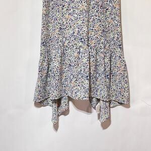 Anthropologie Lilka Sundress Womens Small Asymmetrical Hi-Low Ruffle Hem Adjustable Spaghetti Straps, Multicolor-White base with blue pink green dashes. Very lightweight. Stock photo is not a good representation of the colors (only the fit) see close up photos for actual color.