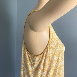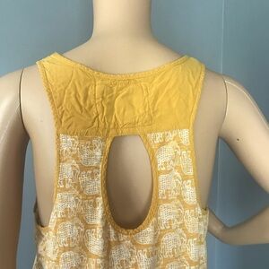 Add a playful, boho-inspired piece to your wardrobe with this golden yellow and white racerback tank by Lilka (Anthropologie). Featuring a charming elephant pattern and flattering high/low hem, it’s perfect for layering or wearing solo on warm days.