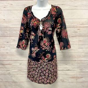 Anthropologie Lilka Floral Bird Print Cotton Dress