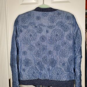 Anthropologie Lilka Floral Embroidered Denim Bomber Jacket Size S