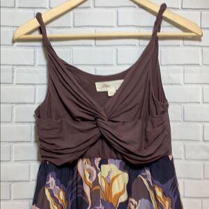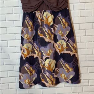 This dress is cute and cool for warm summer weather. Measures 16" pit to pit, 14" at lower bodice, length is 34". In very good pre-owned condition. Normal wear and tear noted, but no flaws or damage. Please review pictures and feel free to ask any questions or for more pictures prior to purchasing.