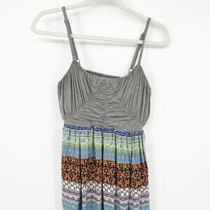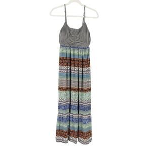 Anthropologie Lilka Womens Boho Mixed Print Artsy Pleated Maxi Dress in Grey Multicolor. Size Small.