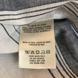 White, denim blue color, flattering vertical stripes, sheer 100% cotton