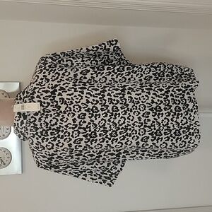Anthropologie Lily & Lionel, Animal Print, Button Down, 100% Silk, Size M, NWT! Short Sleeve, Regular Cut. Button Down, "Painted Leopard" Color. Very Light Gray (almost white) with Black Leopard Spots. Gorgeous and New with Tags!