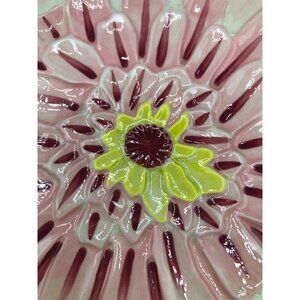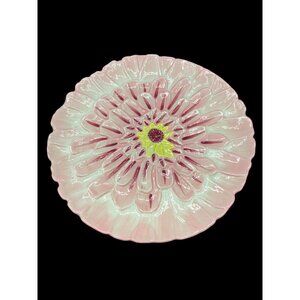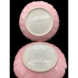 Anthropologie Lilypad Floral Ceramic Salad/Dessert Plates Set Of 2 8" Pink/Yello