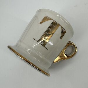 Anthropologie Limited Edition Gold Initial Monogram Letter "T” Coffee Cup Mug