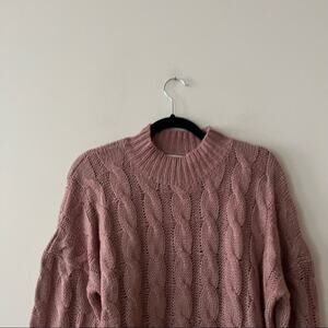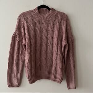 In good preowned condition. Mock neck. Cable knit. Mauve pink. Sold at Anthropologie.
